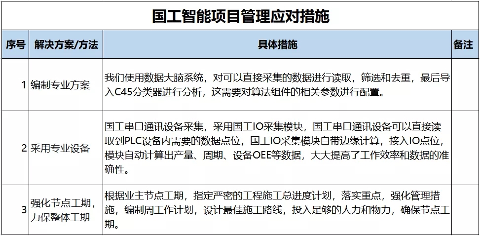 盡管項目實施存在諸多難點,但國工智能項目團隊能克服困難,以“精心策劃 科學施工”為施工宗旨,實現了智能制造平臺的各項目標,按時保質完成了合同要求的所有項目。