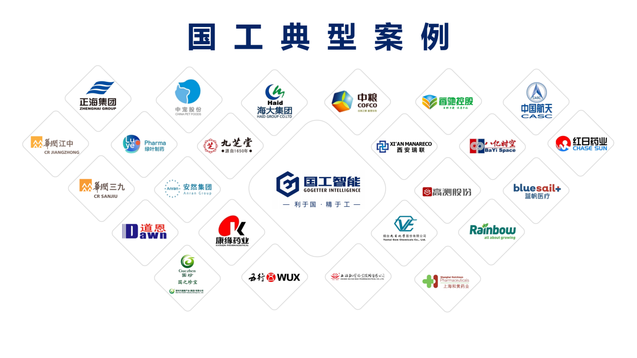 國工智能在化工、醫(yī)藥、食品、飼料、新材料等行業(yè)深耕已久,客戶遍布全國,已成功為海大集團、華潤三九藥業(yè)、康緣藥業(yè)、豐原集團、道恩集團、九目化學、藍帆醫(yī)療、新時代健康產(chǎn)業(yè)集團、安然納米集團等客戶提供智能制造落地服務。