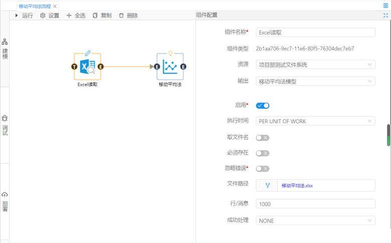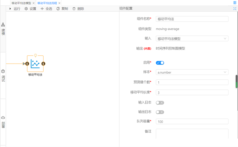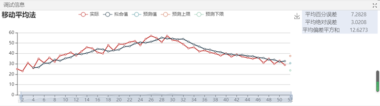 ②使用集成好算法的移動(dòng)平均法組件對(duì)數(shù)據(jù)進(jìn)行預(yù)測(cè),對(duì)組件參數(shù)進(jìn)行設(shè)置,樣本設(shè)置為number,預(yù)測(cè)值個(gè)數(shù)設(shè)置為1,移動(dòng)平均長(zhǎng)度設(shè)置為3,單擊運(yùn)行,從調(diào)試面板中查看分析結(jié)果。