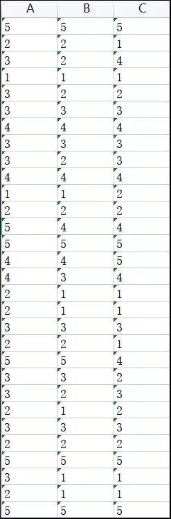 某企業隨機抽取了3臺設備,并分別記錄了50次設備維護后,設備使用人員對此次設備維護的評價,1為最低分,5為最高分。