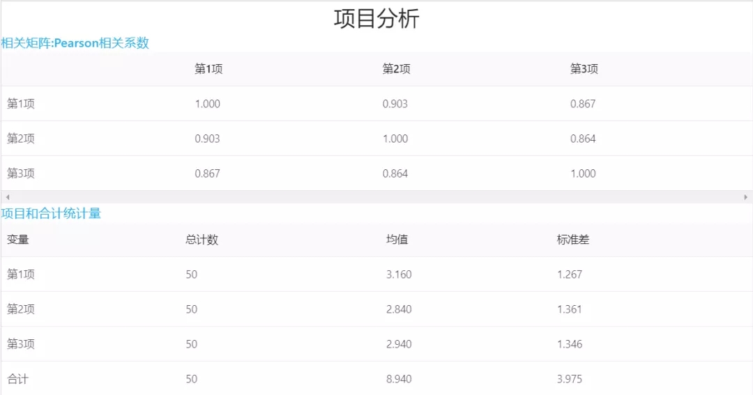 標準差:標準差能反映一個數據集的離散程度。平均數相同的兩組數據,標準差未必相同。Cronbach Alpha:一般探索性研究,Cranbach's a系數在0.6以上,基準研究在0.8以上,通常情況下Cranbach's a系數在0.6以上,被認為可信度較高。Pearson相關系數:用來衡量兩個數據集合是否在一條線上面,它用來衡量定距變量間的線性關系。大于0.7呈高度相關,則說明這些項目度量同一技能或特征。