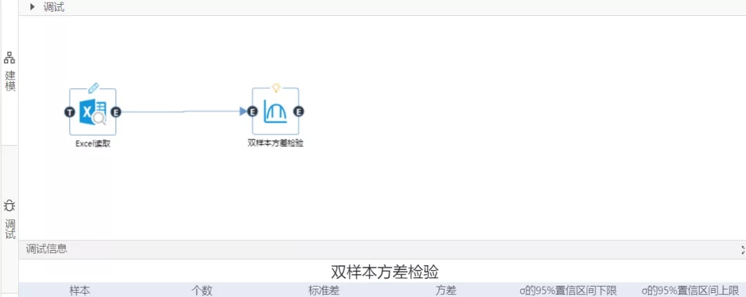 從數據大腦中的組件面板查找雙樣本方差檢驗組件,拖到到工作面板,配置數據,雙樣本方差檢驗組件參數,點擊運行。