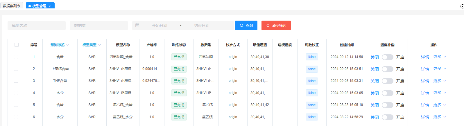 4. 靈活性強,針對企業同一精餾裝置精餾回收不同溶劑的情況,可以分別建立模型,提高智能光譜儀的靈活性和適應性。操作簡單,生產人員經過簡單培訓即可完成在線光譜儀的建模、維護等相關操作。下圖為同一精餾裝置精餾不同溶劑時不同檢測指標的模型示例。