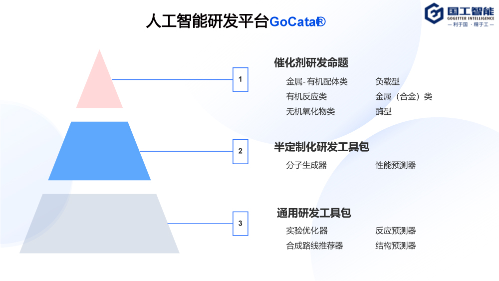 不論是實驗室研發階段,還是小試、中試階段,都會遇到如何選擇較優的實驗條件的問題。比如選用的催化劑類型、原料配比、溫度、壓力等等,這些實驗條件的選取直接影響最后的產率。常用的正交實驗、高通量實驗等手段,依然經常面臨試錯成本高、效果不明顯等問題。國工結合計算化學、知識圖譜、AI算法、以及自動化實驗平臺,打造出一套技術高度整合、學科高度交叉的智能型實驗優化平臺,面對客戶的具體需求,可以從積累的數據庫中利用AI算法選擇最適合的實驗條件,并經過實驗驗證,在短周期內將經過實驗驗證的各類條件交予客戶手中。